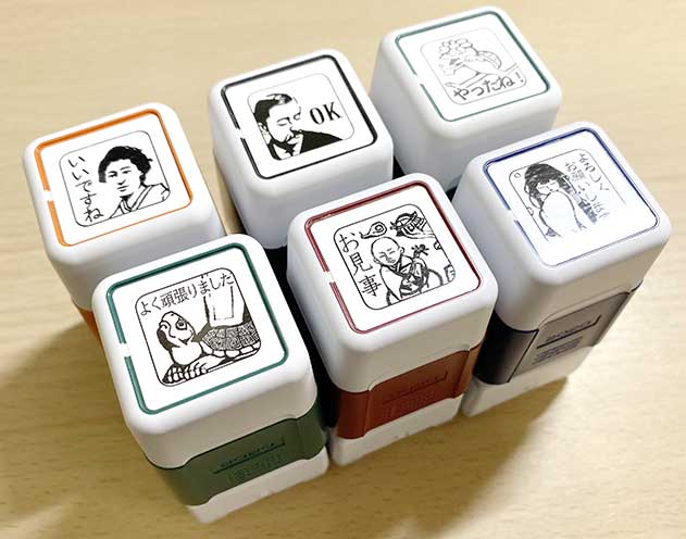 松江の魅力が詰まった、生徒さんとのやり取りに使えるスタンプのセットです。松江市ゆかりの文豪・小泉八雲と妻セツ、雪女、大亀、耳無芳一、河童をデザインしました。松江出身の先生、社会地理の先生方に使って頂き、授業や生徒さんとの話題で松江を挙げるきっかけにしてもらえたらと考えました。スタンプの言葉はポジティブで使いやすいものをとスタッフで意見を出して決めました。 -