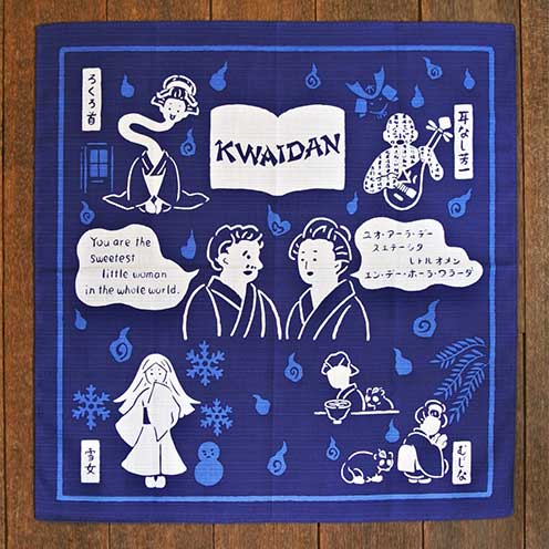 明治の文豪・小泉八雲と妻セツ、そして二人が紡いだ怪談をモチーフにしたオリジナルデザインのハンカチを作成致しました。 -