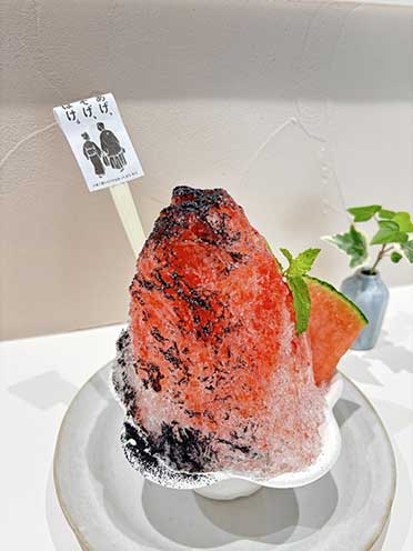 いちご蜜を血糊にみたて、炭で怪談をイメージ。一口食べれば、一瞬で雪おんなが現れたかのような涼しさと、口の中は真っ黒お化け -