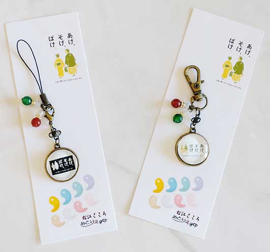 「あげそげばけ」のロゴマークを使ったストラップです。天然石のメノウをつけました。「あげそげばけ」のロゴマークのストラップメノウ付きです。メノウは「健康長寿」「子宝」「家庭夫婦円満」の効能があると言われています。お守りにもどうぞ。