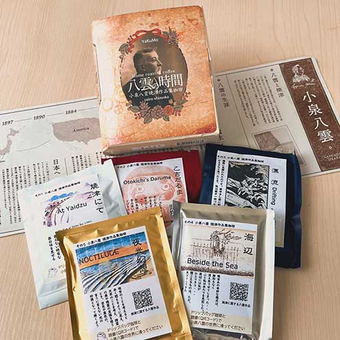 小泉八雲が著した【神々の国】の章に書かれた、松江の情景の中に甘酒に関しても書かれており、当時に甘酒売りが甲高い声で甘酒を販売している情景が読み取れるので商品化を行いました。物語のある松江にこだわって、原材料のお米は松江市産にし、ラベルデザインの方言だけでなく物語を丸ごとお土産にできるような製品化を心がけました。 -